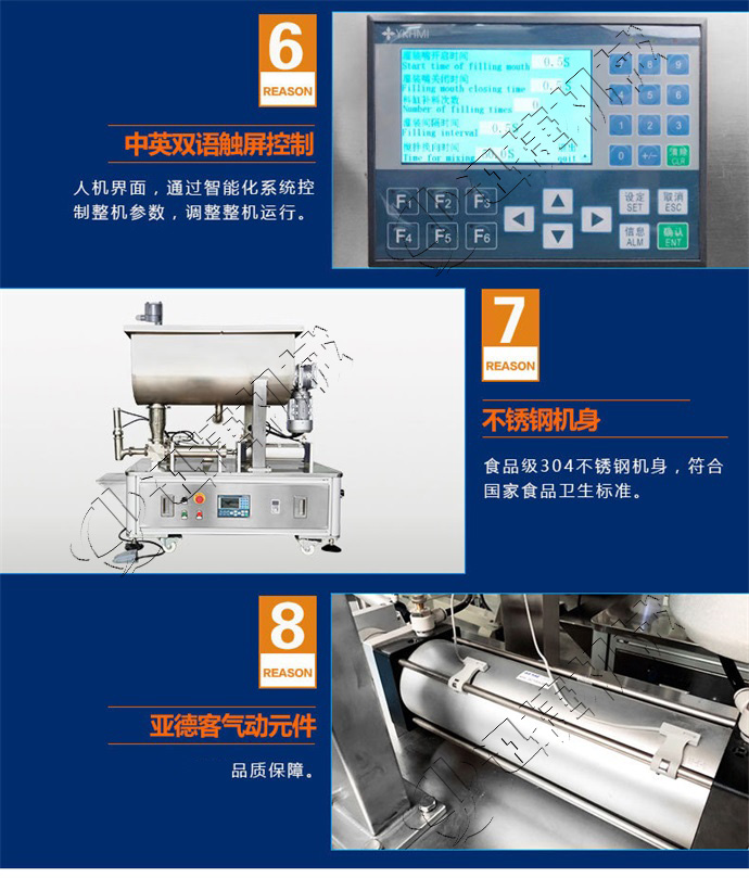 半自動辣椒醬灌裝機適合于將各類粘稠體及含有各種固體物質如辣椒、花生、肉塊、佐料等物體的醬類和油、料分離的火鍋底料等灌裝于各種容器中,適用于辣椒醬、顆粒醬料、大塊肉醬、火鍋底料等醬體的灌裝。